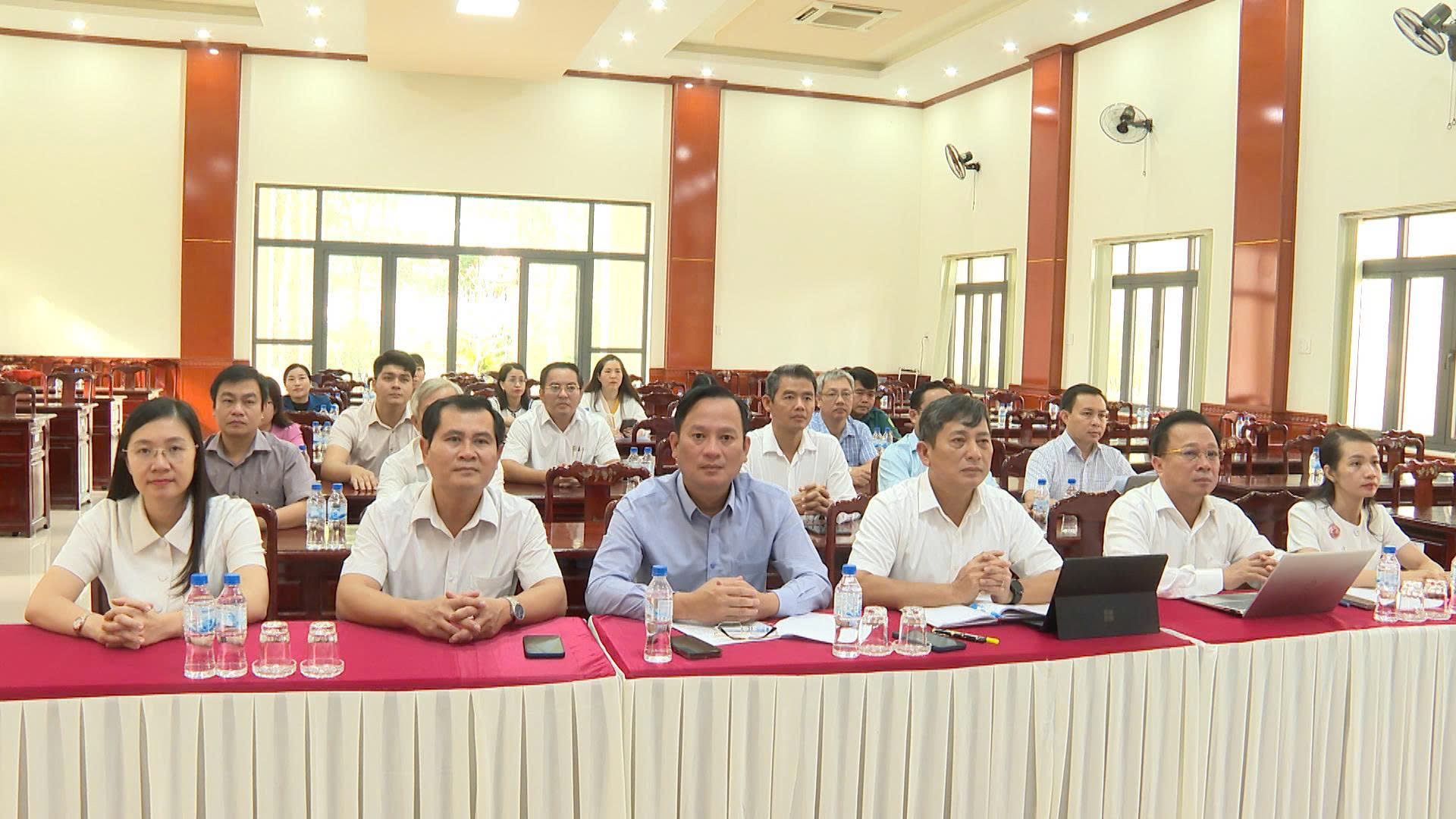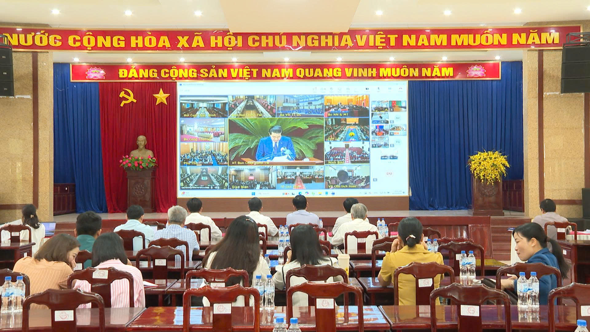 Toàn cảnh tại điểm cầu Hội trường Đảng ủy phường Chơn Thành